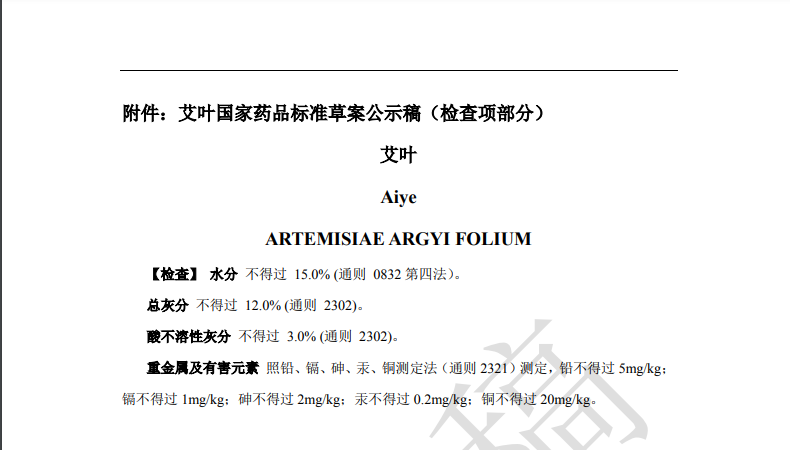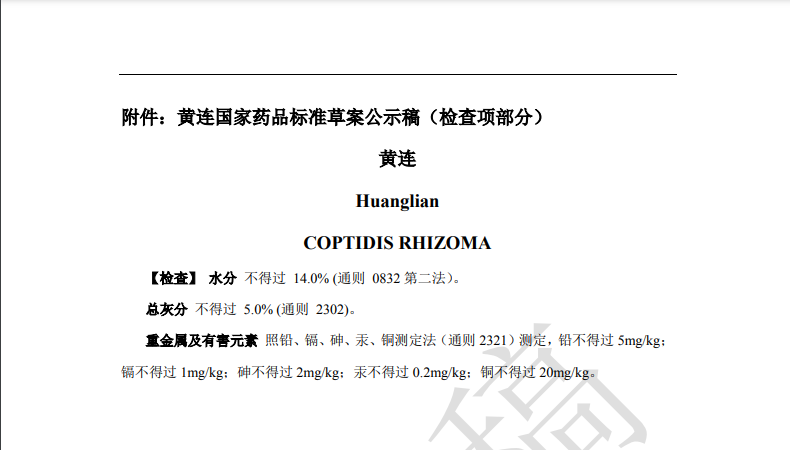 隨著《中藥法典》標(biāo)準(zhǔn)修訂進(jìn)程的推進(jìn),藥典委官網(wǎng)近期陸續(xù)發(fā)布多個標(biāo)準(zhǔn)公示,均與中藥重金屬及有害元素控制相關(guān)。其中,“關(guān)于黃連國家藥品標(biāo)準(zhǔn)草案的公示”、“關(guān)于艾葉國家藥品標(biāo)準(zhǔn)草案的公示”、“關(guān)于川芎國家藥品標(biāo)準(zhǔn)草案的公示”,對相關(guān)檢測項擬進(jìn)行修訂。公示期為30天。通知表示,若有異議,可及時在線反饋,并附相關(guān)說明、實驗數(shù)據(jù)和聯(lián)系方式。