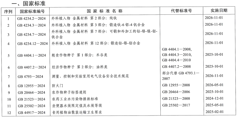 關于批準發(fā)布《外科植入物 金屬材料第2部分:純鈦》等12項強制性國家標準和3項強制性國家標準修改單的公告