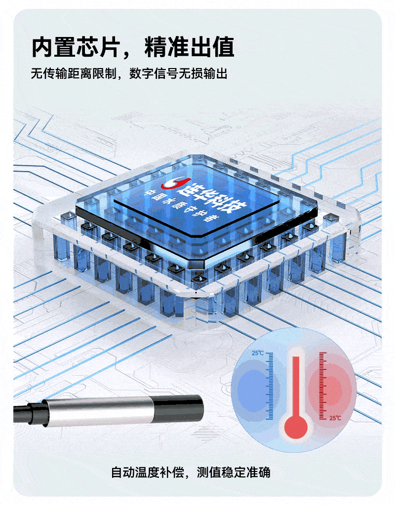 2、采用數(shù)字電極技術(shù),突破傳輸距離限制,默認(rèn)5米線長(支持定制),結(jié)合自動溫度補償功能,確保戶外檢測信號穩(wěn)定、測量精準(zhǔn);