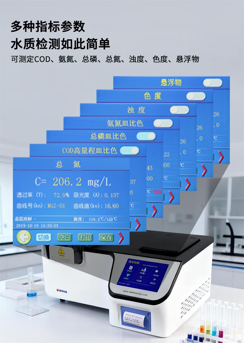 2.多光路無(wú)干擾系統(tǒng):具有多光路無(wú)干涉系統(tǒng),可測(cè)定COD、氨氮、總磷、總氮、濁度、色度、懸浮物。支持皿比色和管比色兩種比色方式;